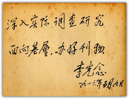 1986年5月 時任中共中央政治局常委、國家主席李先念為半月談題詞:深入實際,調(diào)查研究,面向基層,辦好刊物。