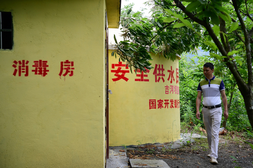 2017年6月12日,陜西省安康市工作人員在漢濱區吉河鎮吉河壩社區巡視安全飲水工程的管理站房和水塔 邵瑞攝